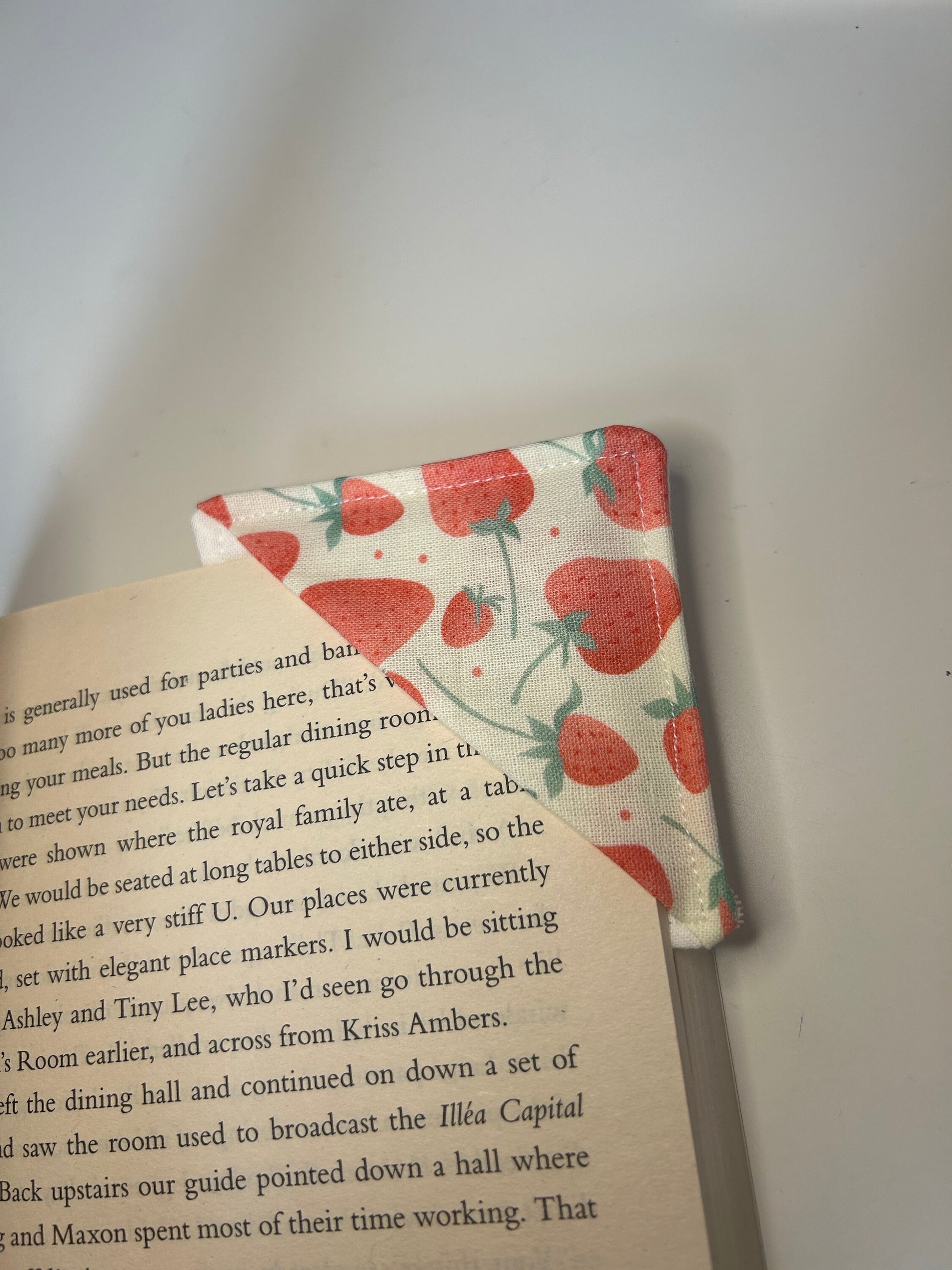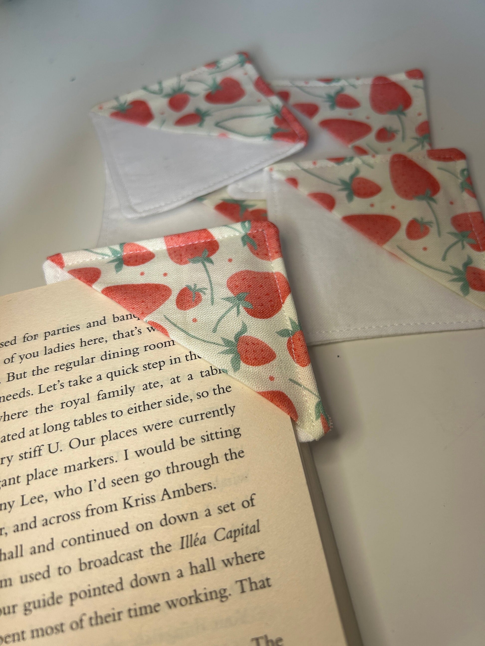 Strawberry Fabric Corner Bookmark: Handmade Book Lover Gift